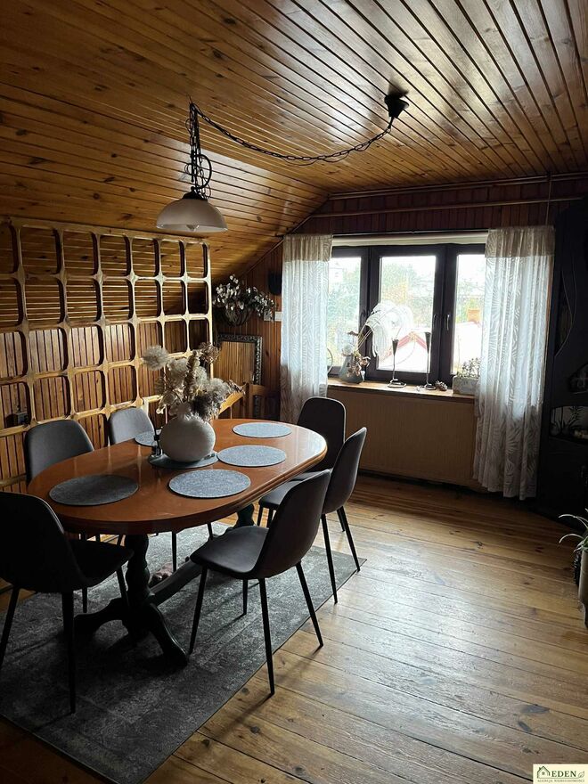 Budynek murowany mieszkalny o powierzchni użytkowej ok. 165 m został wybudowany w 1983 roku i charakteryzuje się solidną konstrukcją, dobrym stanem technicznym i praktycznym układem pomieszczeń, który daje wiele możliwości aranżacyjnych.
