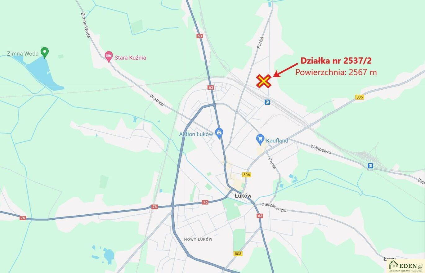 Sprzedam atrakcyjną działkę budowlaną w Łukowie przy ul. Rurowej.Działka nr 2537/2 o powierzchni 2567 m w całości budowlana o wymiarach: szerokość ok. 17m, długość ok. 160m (wymiary granic zaznaczone na zdjęciu).