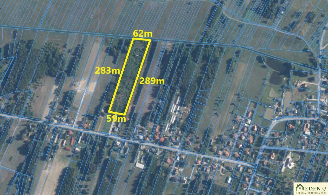 Za nią, w drugiej linii zabudowy, położona jest działka rolno-rekreacyjna o powierzchni 1,7214 ha (nr 1056/3), o wymiarach około 59 m x 286 m.