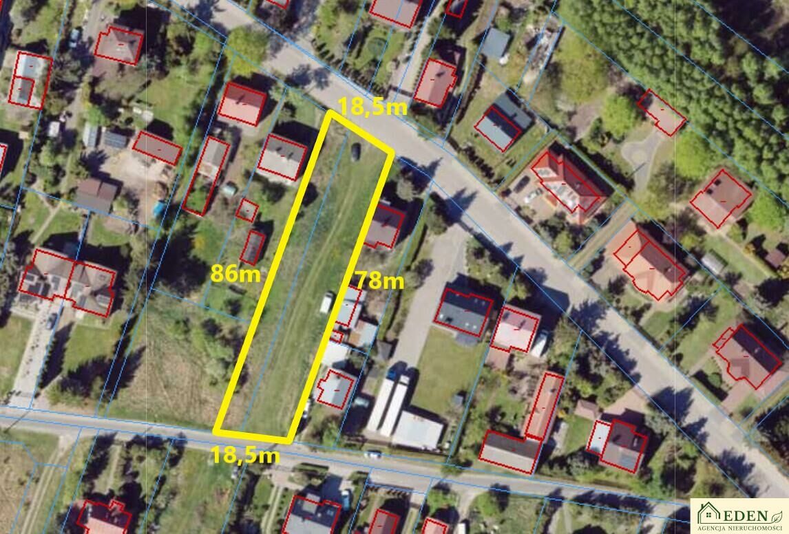 Nieruchomość składa się z dwóch działek ewidencyjnych o numerach 1094 i 1095, które łącznie tworzą funkcjonalny i ustawny teren o szerokości około 18 metrów, dający bardzo dobre możliwości zagospodarowania.