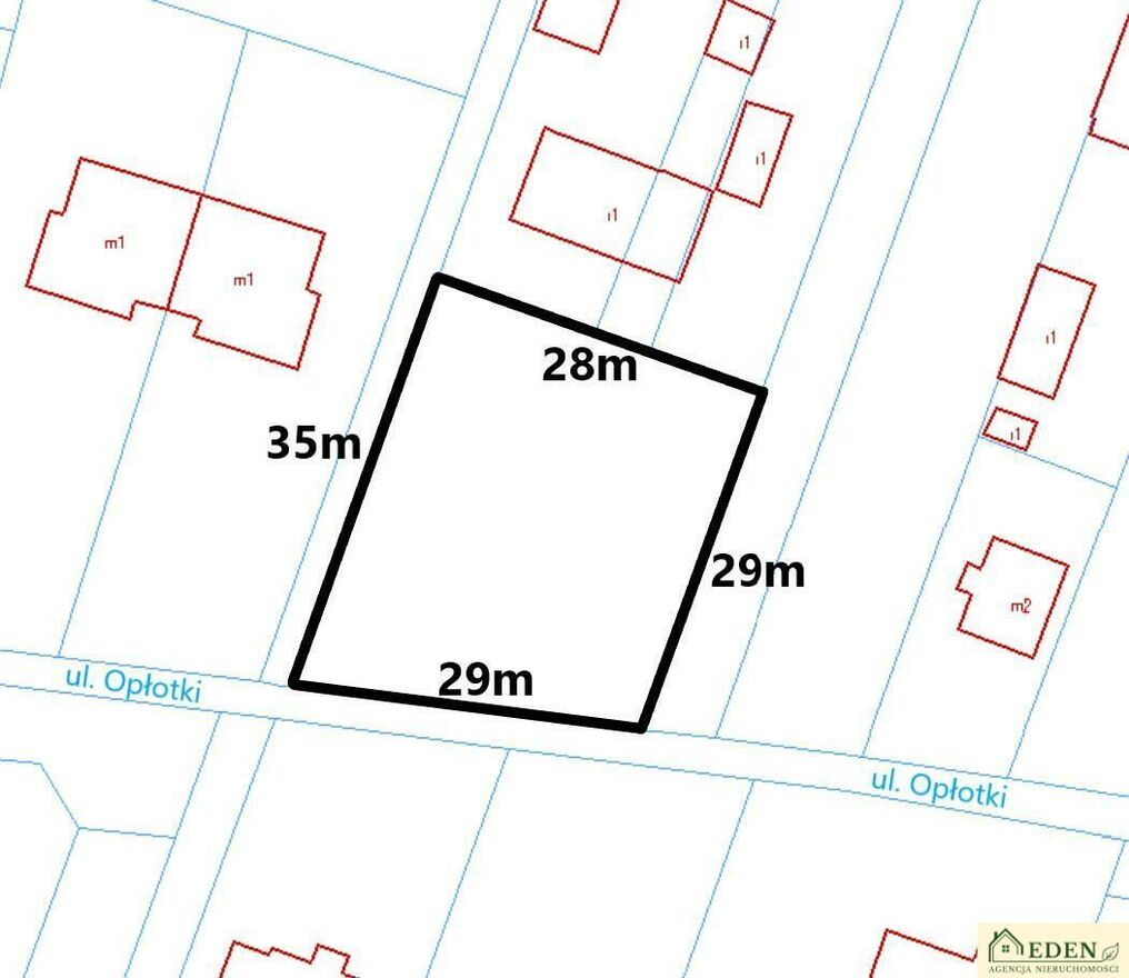 Nowa Cena! Sprzedam atrakcyjną działkę budowlaną o powierzchni 904 m w Łukowie przy ul. Opłotki obok ul.Poważe.Wymiary działki zaznaczone na zdjęciu.