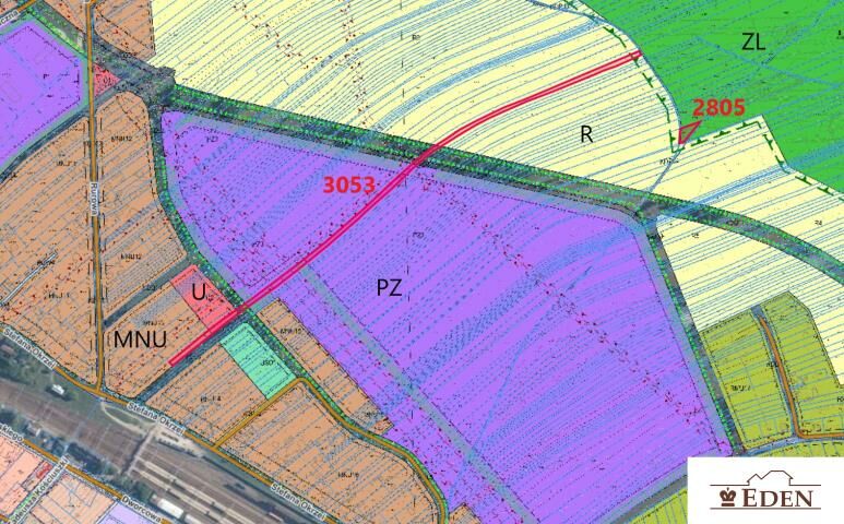 Działka nr 3053 o powierzchni 6259 m i szerokości od 6,5 do 8 metrów, która ciągnie się malowniczo wzdłuż terenów zielonych. Zgodnie z miejscowym planem zagospodarowania przestrzennego teren ten jest zróżnicowany pod względem przeznaczenia: część oznaczona jako MNU (mieszkaniowo-usługowa), część jako U (usługi), spory obszar jako PZ (tereny zielone) i R (rolna), a także fragment pod drogi (KD). Takie zróżnicowanie daje szerokie możliwości przyszłego wykorzystania działki od zabudowy po cele rekreacyjne czy usługowe.