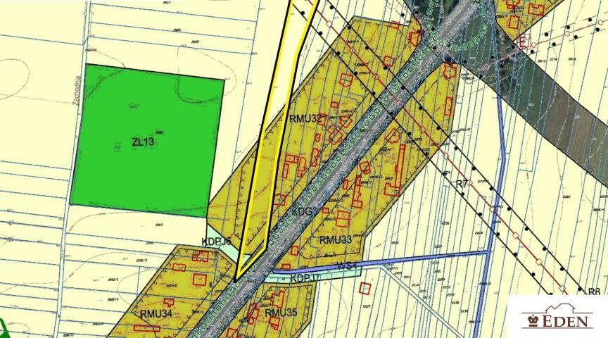 W Miejscowym Planie Zagospodarowania Przestrzennego opisane symbolami RMU (teren zabudowy mieszkaniowej i jednorodzinnej z usługami o pow. ok. 28 arów) R (tereny rolnicze, klasa ziemi: RIVb, RV).