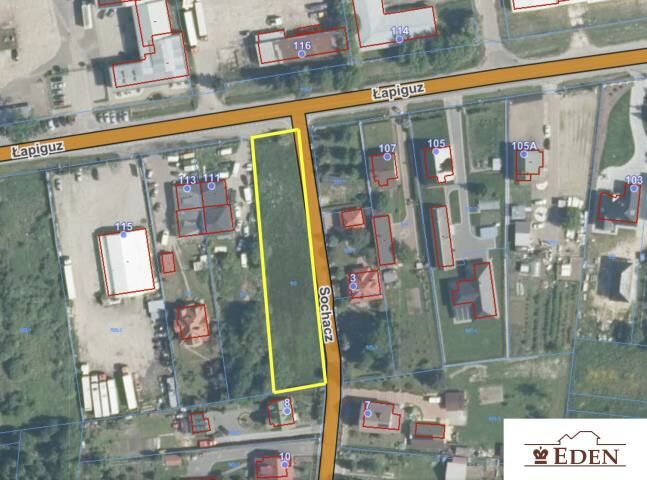 OKAZJA! Sprzedam atrakcyjną działkę usługową w Łukowie przy ul. Łapiguz.Działka narożna o powierzchni 2134 m przy drogach asfaltowych na krzyżówce ul. Łapiguz z ul. Sochacz o szerokości ok. 20 m i długości ok. 105 m.