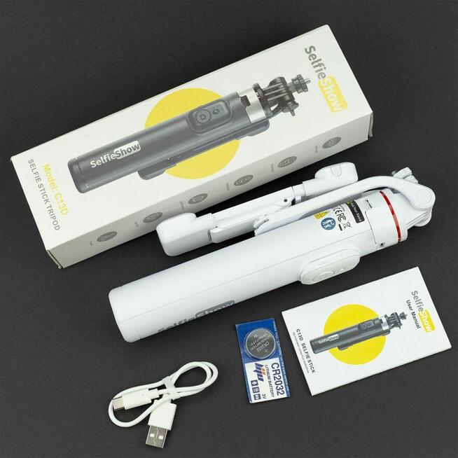 opis Sprzedam nowy selfie stick ze statywem SelfieShow C13D w wersji z oświetleniem LED. Dwa światła LED po bokach ...
