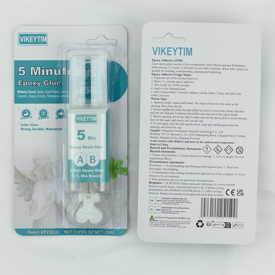 Klej epoksydowy Vikeytim w zestawie 2x25 ml, twardniejący w ciągu 5 minut. Nowy, nieużywany produkt.Ściany z Charakterem