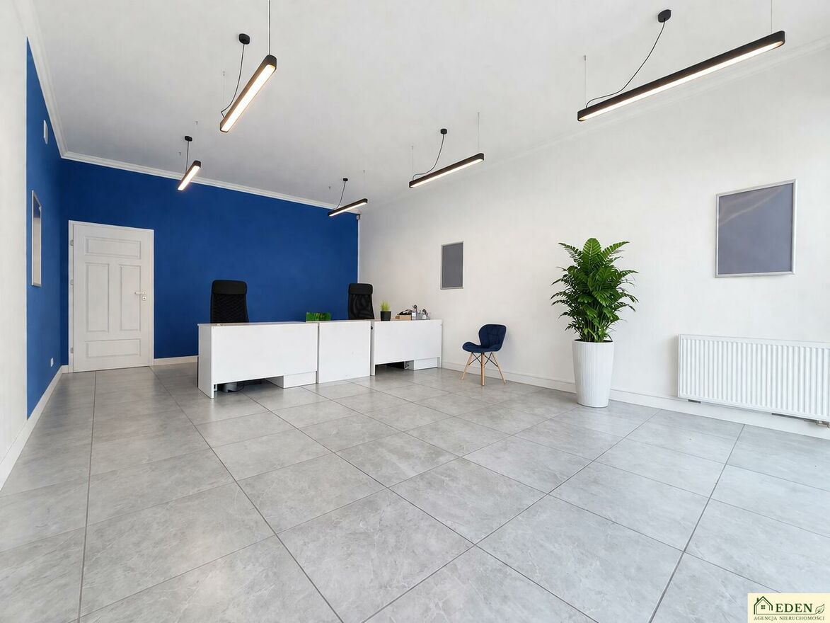 Nieruchomość wyróżnia się bardzo dobrym standardem wykończenia oraz funkcjonalnym układem pomieszczeń. Lokal składa się z przestronnej, dobrze doświetlonej sali głównej z dużymi witrynami od frontu, oraz zaplecza magazynowo-socjalnego z aneksem kuchennym oraz łazienki. Obecny układ ścian działowych ( jest jedna z karton gipsu) daje możliwość łatwej reorganizacji przestrzeni i dostosowania lokalu do indywidualnych potrzeb przyszłego właściciela lub najemcy.