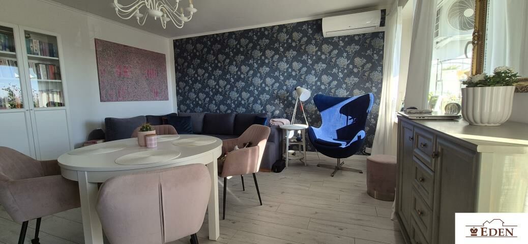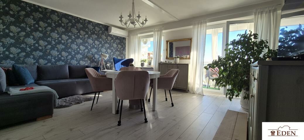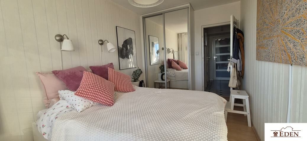 Wnętrze mieszkania zostało zaplanowane z myślą o funkcjonalności i komforcie codziennego życia. Składa się z jasnego salonu wyposażonego w klimatyzację z wyjściem na przestronny, zagospodarowany i zabudowany balkon, przytulnej sypialni, funkcjonalnej garderoby (dodatkowy mały pokój), widnej kuchni, łazienki i osobnego WC oraz przedpokoju.