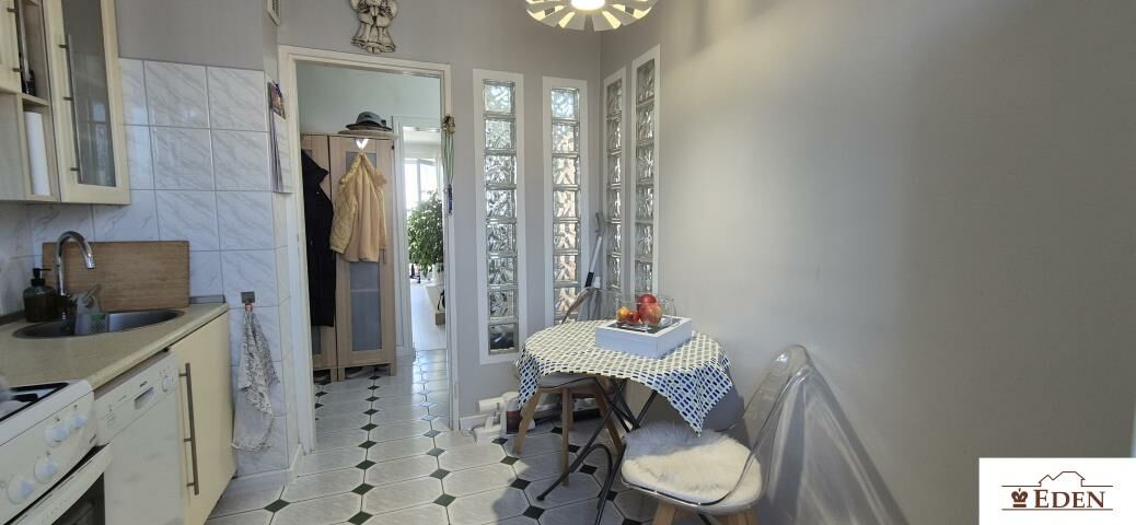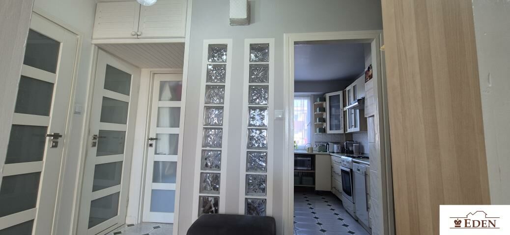 Pomiędzy kuchnią a przedpokojem zamontowane zostały luksfery rozświetlające pomieszczenia i nadające im niepowtarzalnego klimatu. Garderoba wykonana rok temu. Na podłogach w pokojach znajdują się panele, natomiast w pozostałych pomieszczeniach terakota. Szerokie, podwójne drzwi pomiędzy balkonem a salonem ułatwiają swobodną komunikację integrując te dwie strefy w wyszukany sposób, okna PCV.