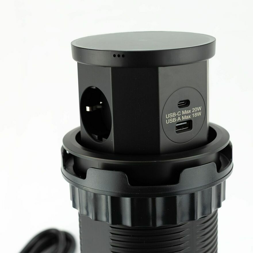 Pneumatyczne gniazdo Pop-Up z USB i ładowarką Qi