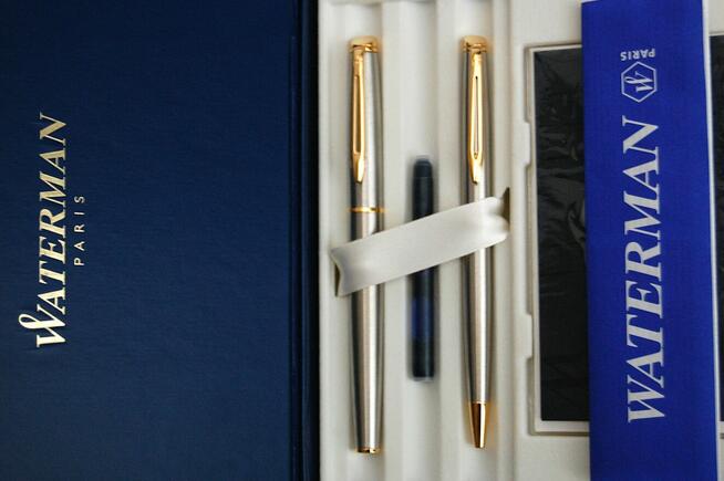 Komplet: pióro wieczne i długopis Hemisphere, Waterman Paris. Obudowa ze stali nierdzewnej z elementami złoconymi. Pióro ...