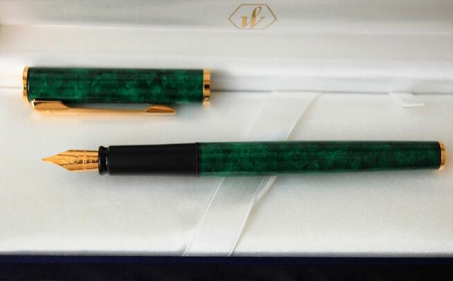 Rzadko spotykane, piękne, kolekcjonerskie pióro wieczne vintage - Waterman Apostrophe, green marble. Obudowa pióra jest ...