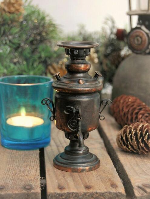 Samowar w miniaturze, metaloplastyka, Rosja. Unikatowa, ręcznie wykonana stara figurka, najprawdopodobniej z lat 50 lub 60 ...
