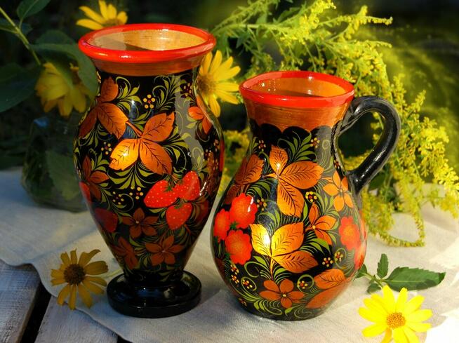 1. Bajecznie piękny, ręcznie malowany, rosyjski wazon ludowy w stylu chochłoma. Jest to tradycyjna rosyjska sztuka ...