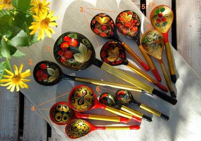 1. Ręcznie malowana, rosyjska łyżka w ludowym stylu chochłoma. Jest to tradycyjna rosyjska sztuka zdobienia drewnianych ...
