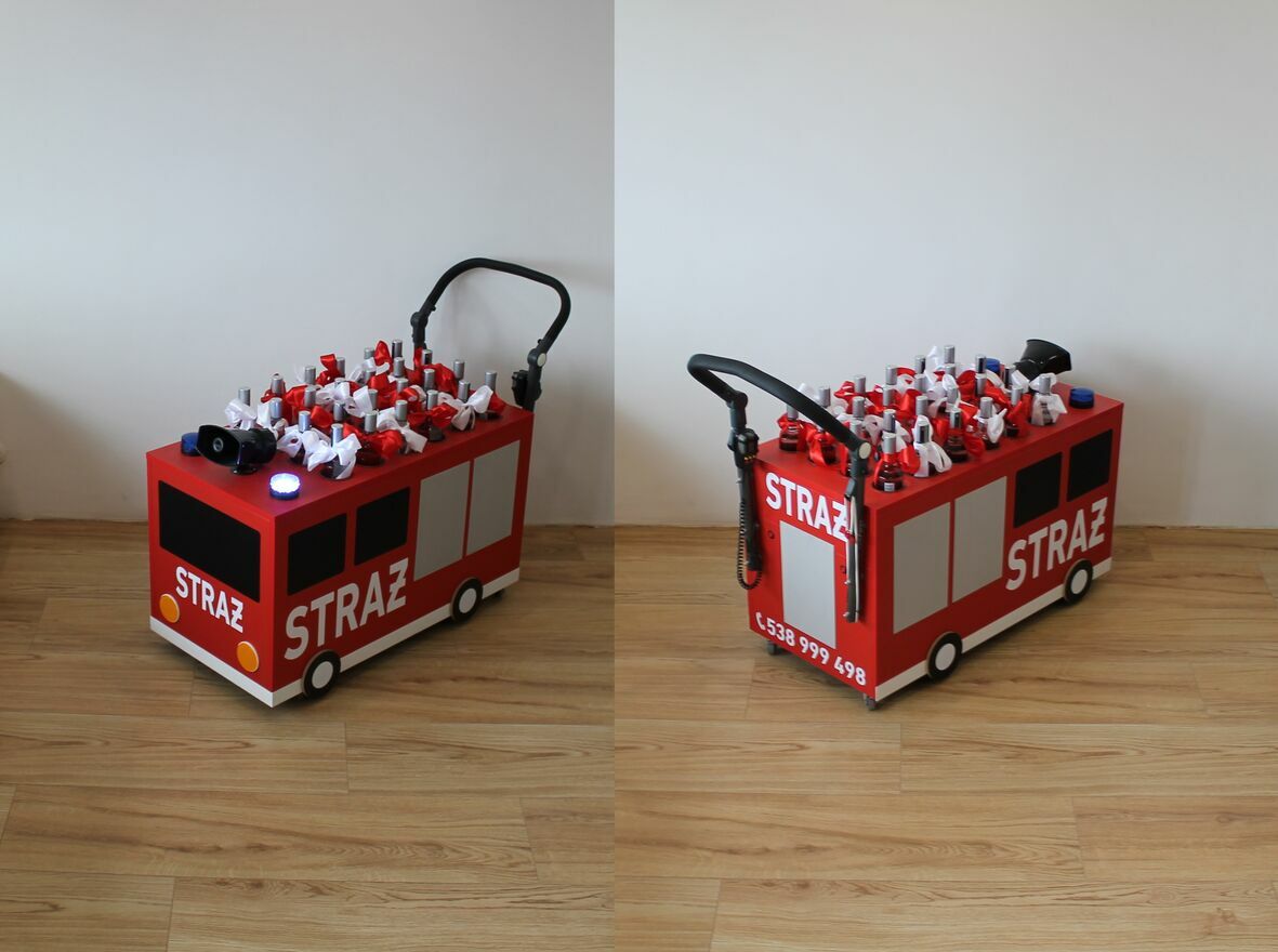 Miniaturowy wóz strażacki z miejscem na 24 butelki dostarczający % bez opóźnień.